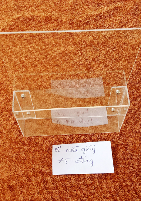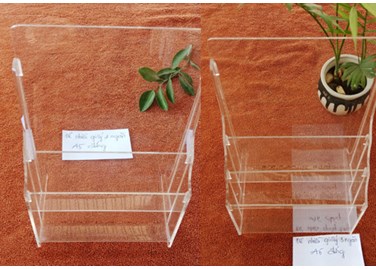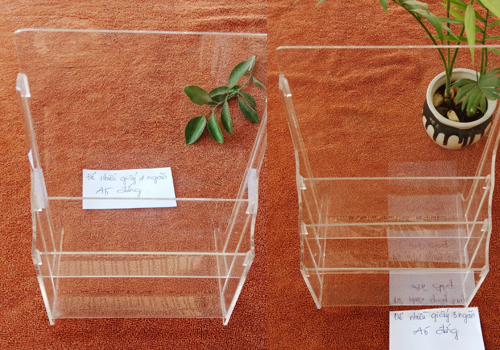+ The body is made of 2-mm transparent acrylic, folded in half according to standard sizes A4, A5, A6 or according to the customer’s requested size.
